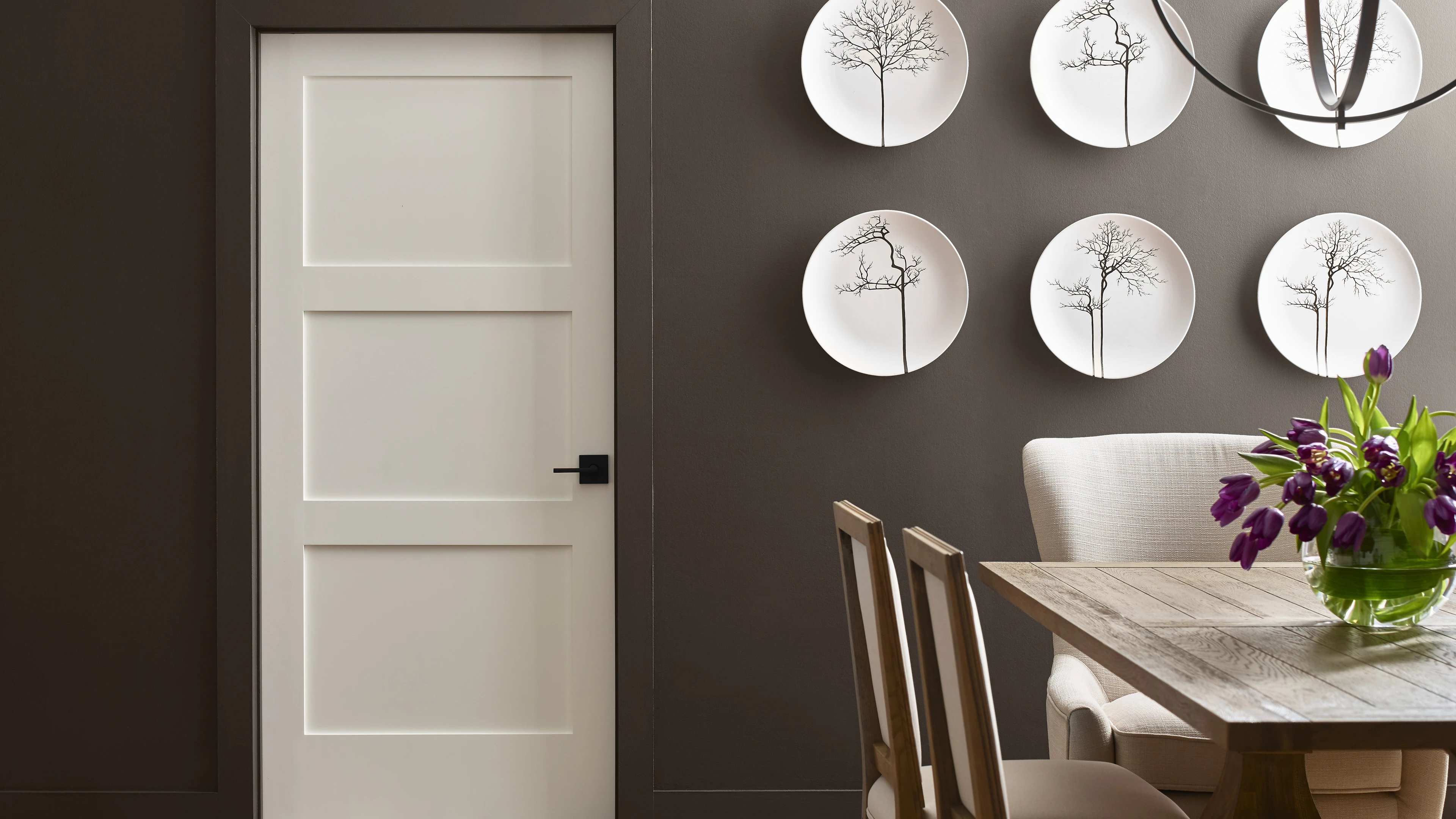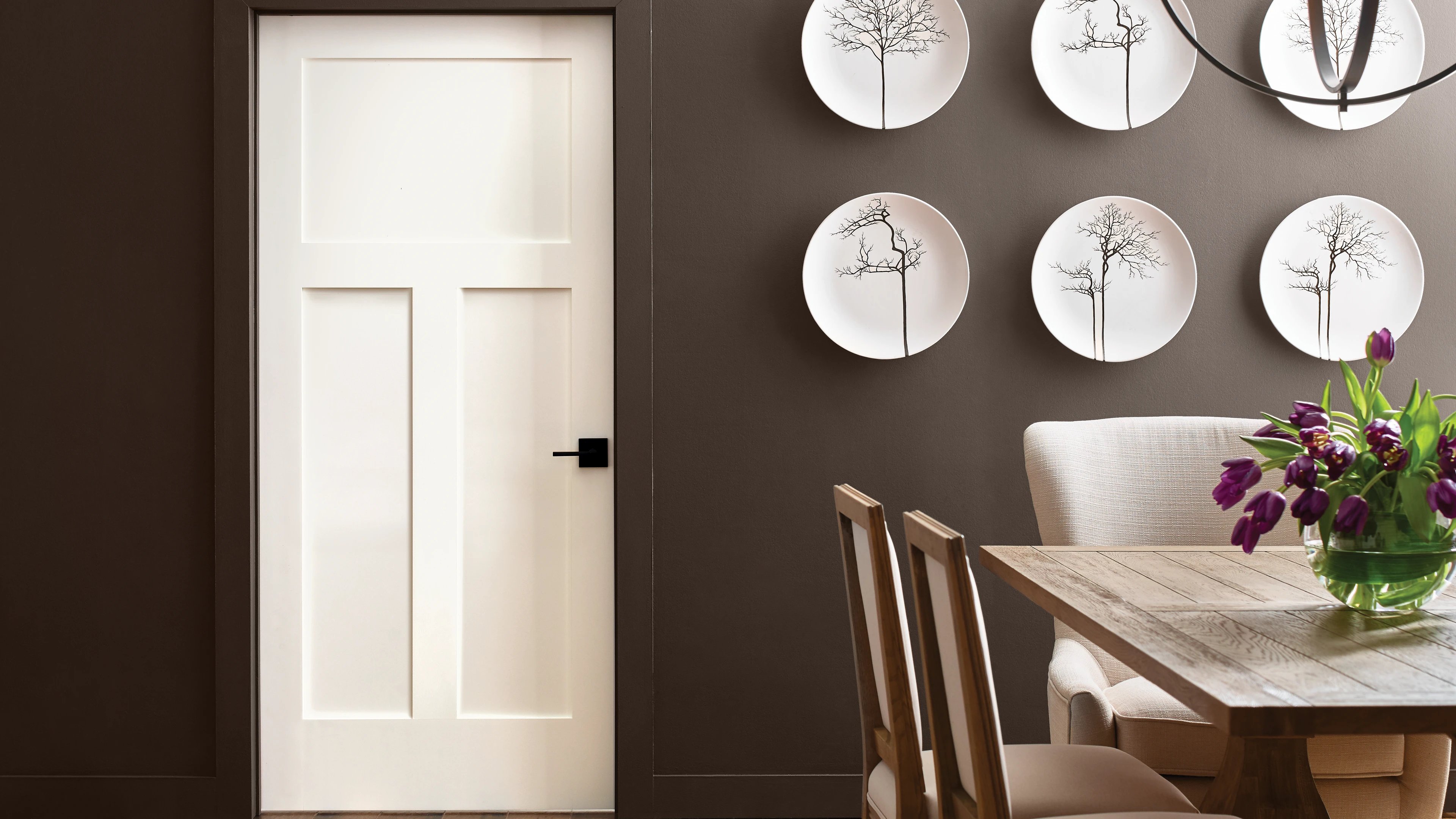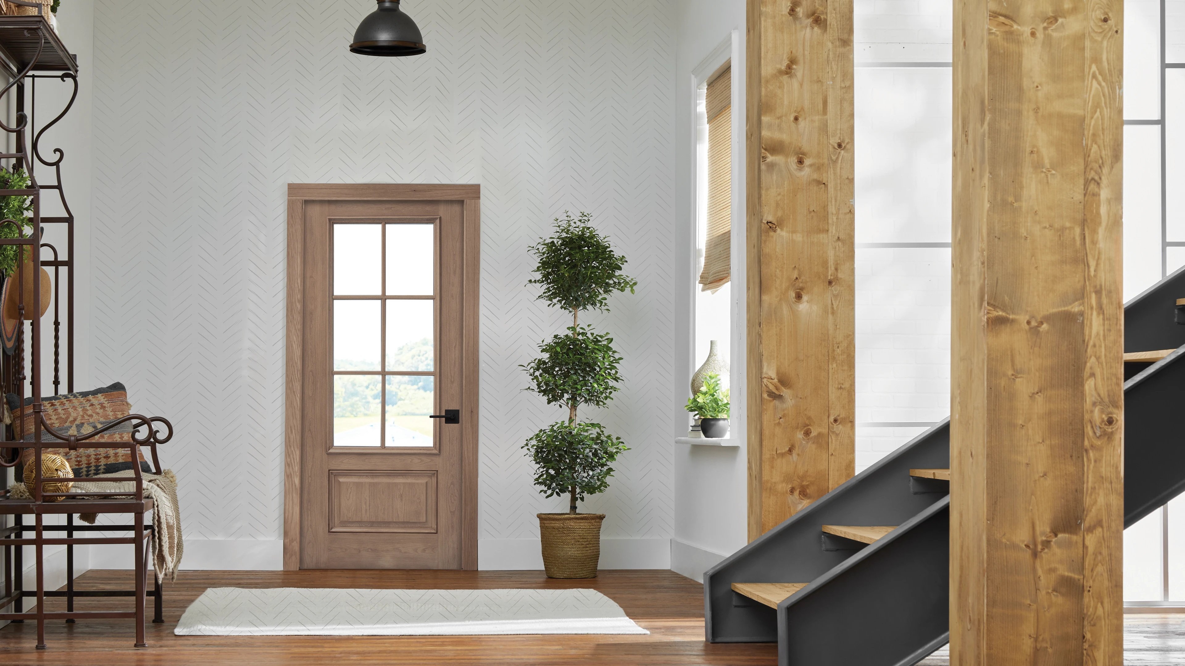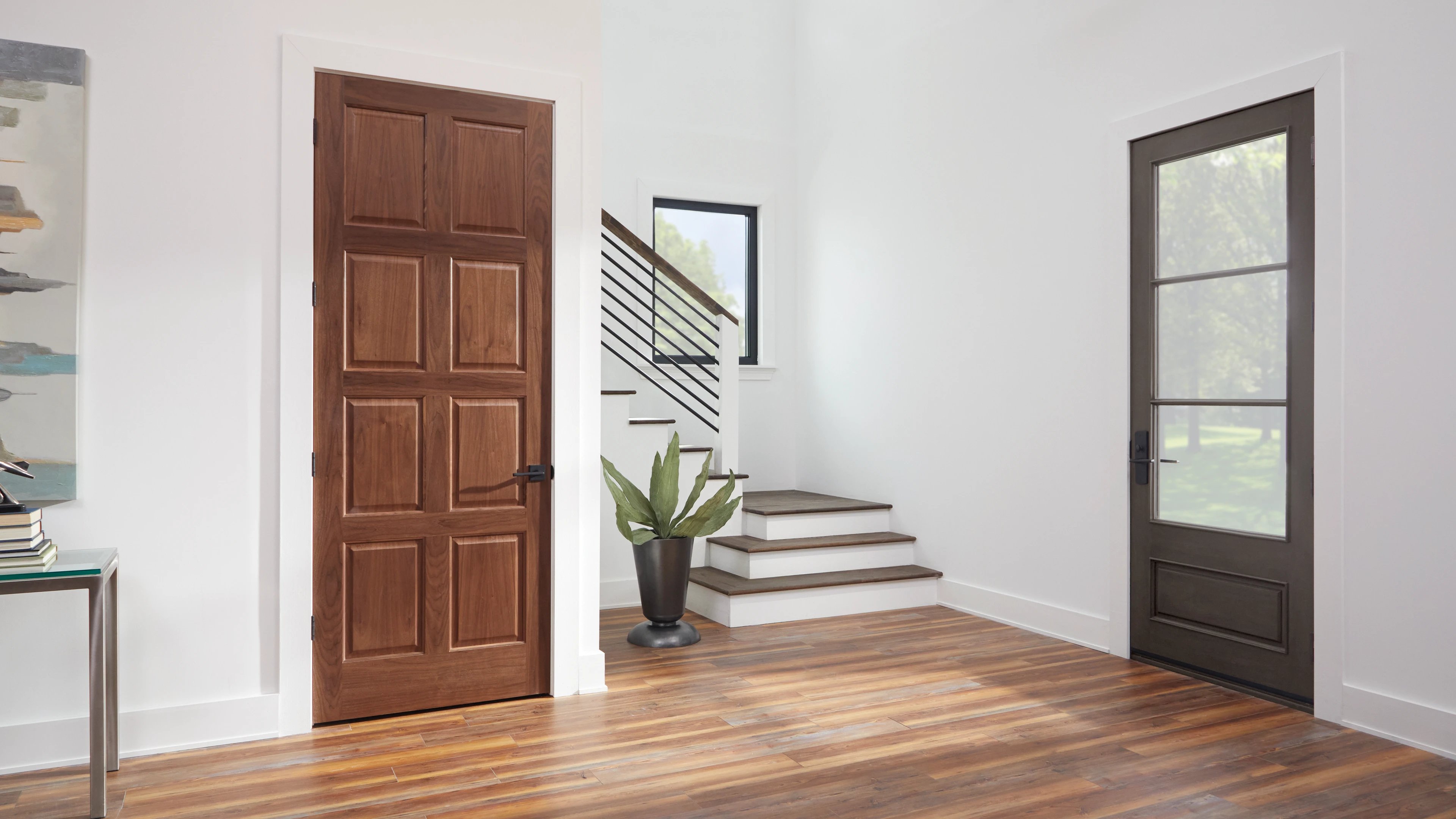 Les portes d'intérieur tout en panneau sont proposées en bois ou bois composite. Elles procurent une excellente intimité et peuvent comporter une âme pleine à des fins d'insonorisation.