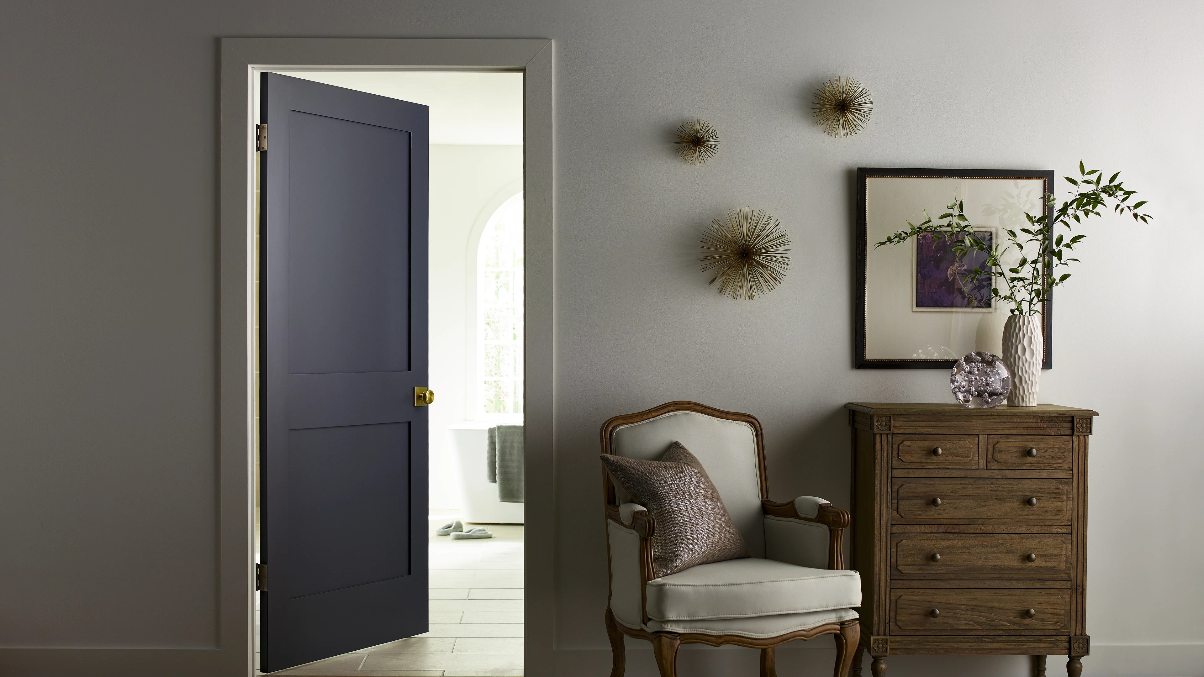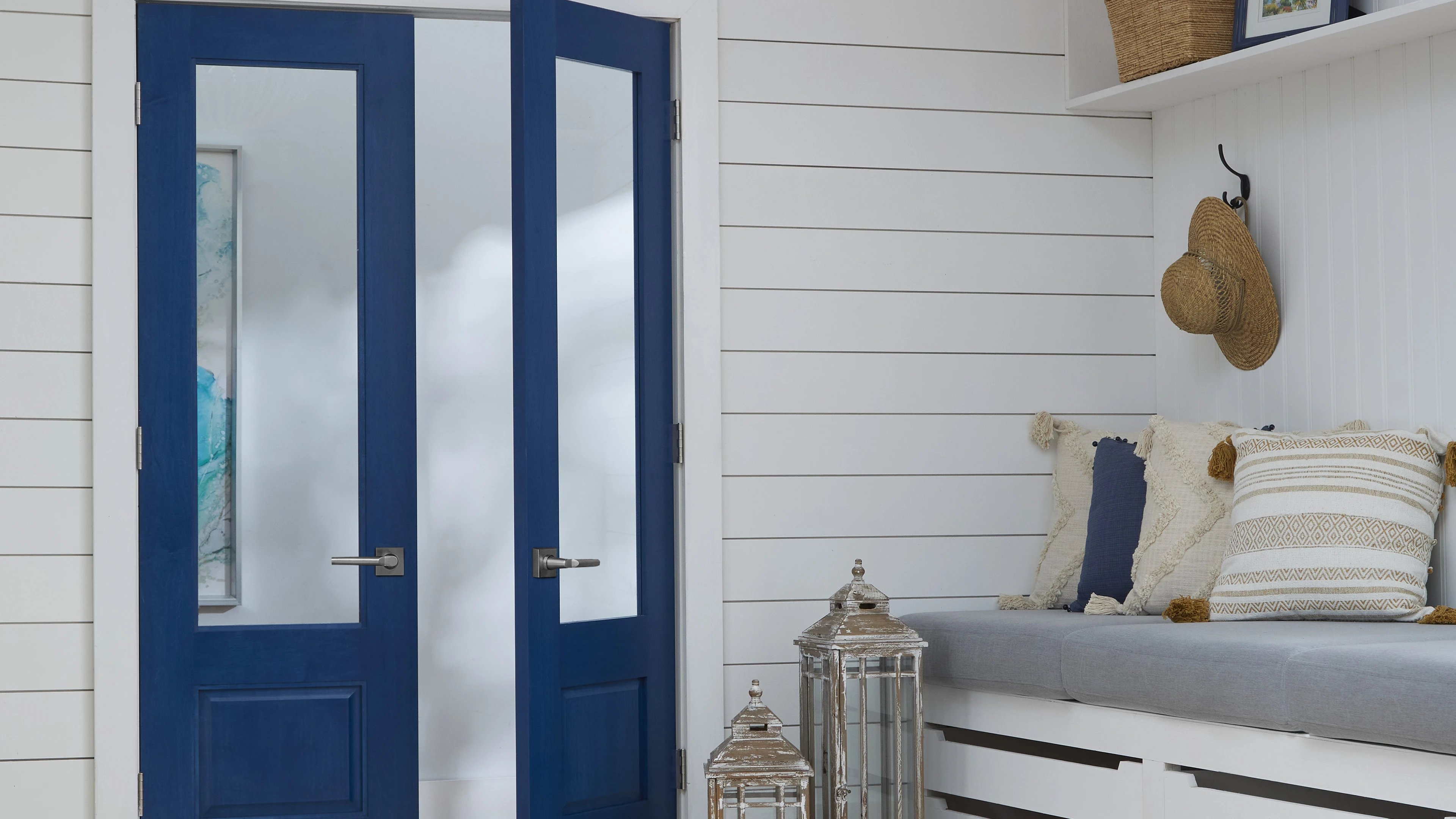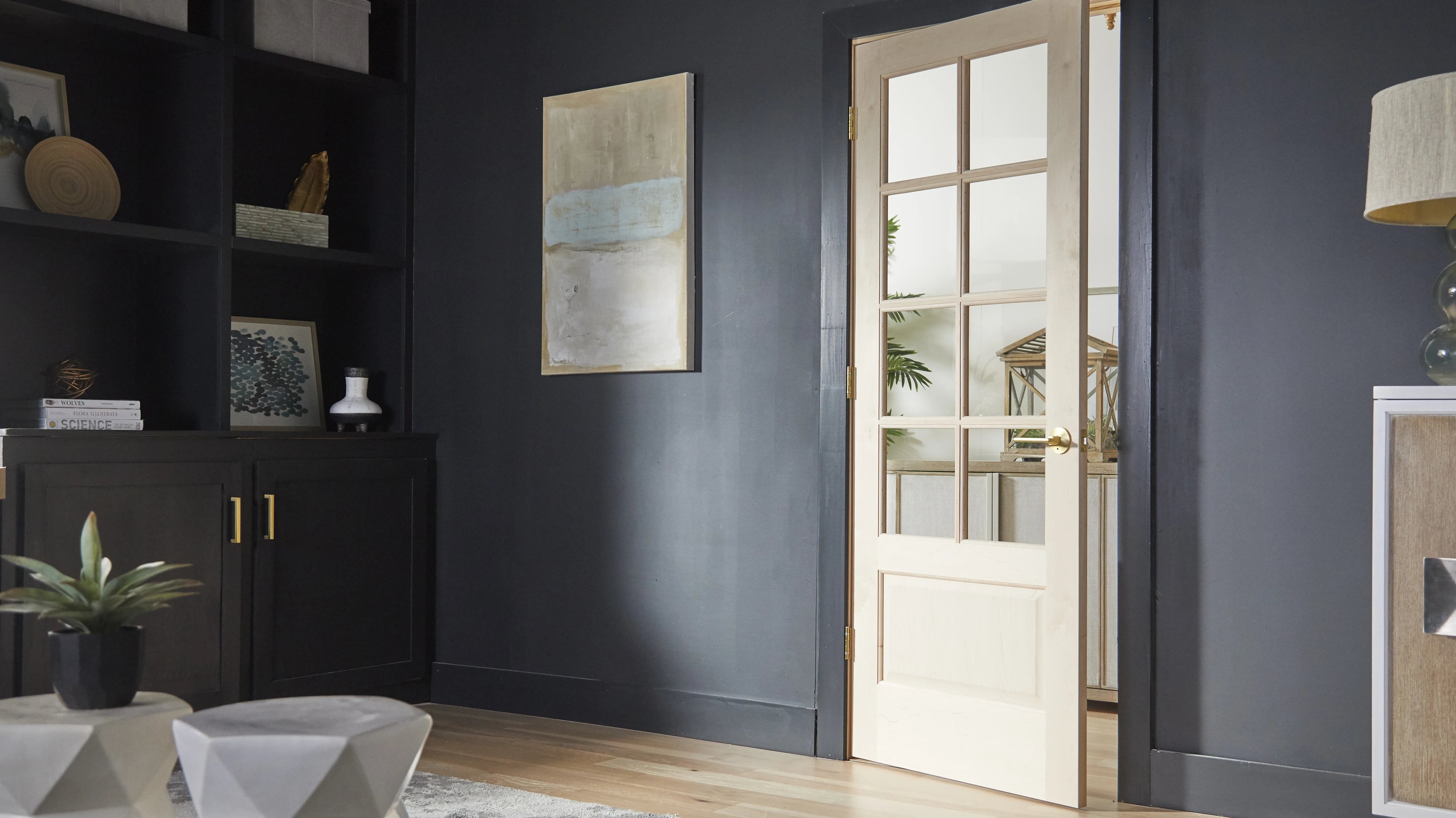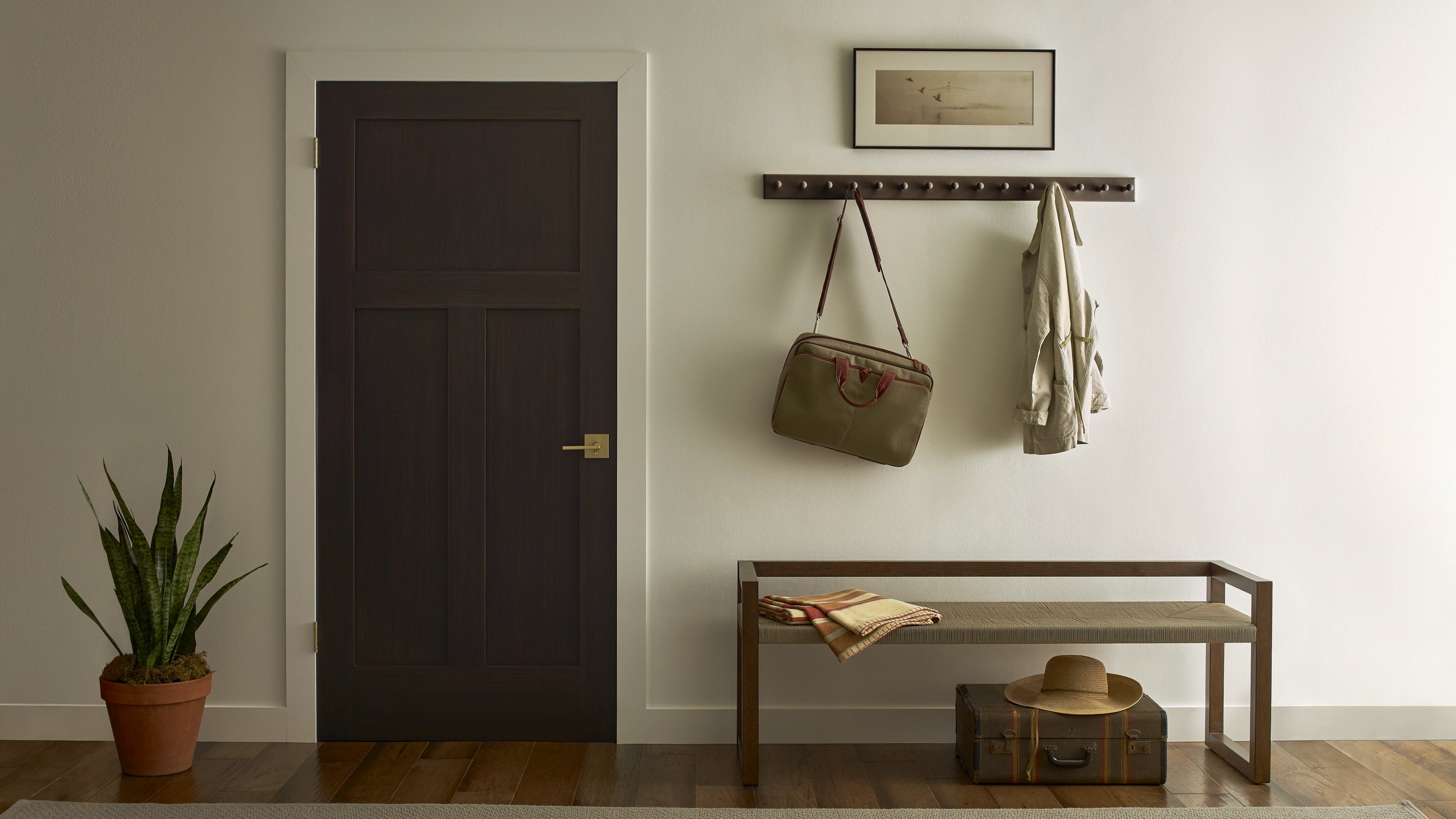 Les portes d'intérieur tout en panneau sont proposées en bois ou bois composite. Elles procurent une excellente intimité et peuvent comporter une âme pleine à des fins d'insonorisation.